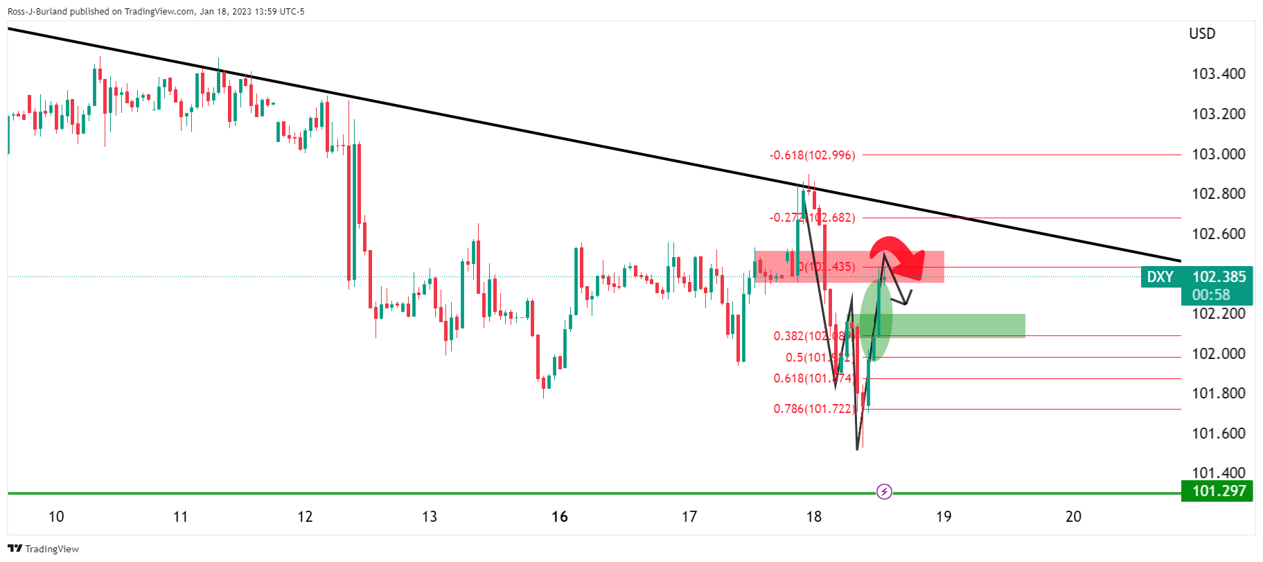 美元指数随后未自低位反弹,技术形态显示美元下跌目标,如下所示: