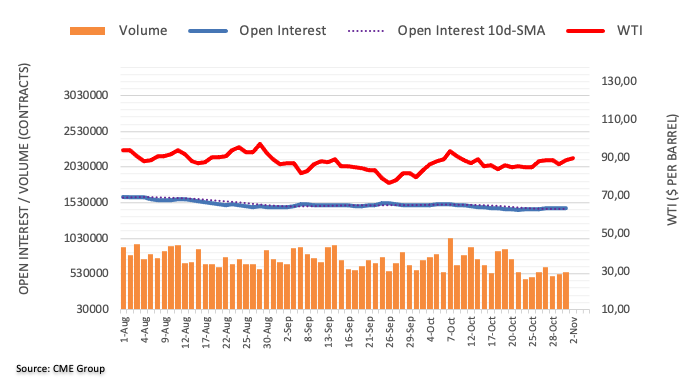 周二WTI原油价格上涨之际未平仓合约和成交量齐增,这表明油价暂时可能继续上扬。不过价格必须收盘于90美元关口上方才能重啟升势。