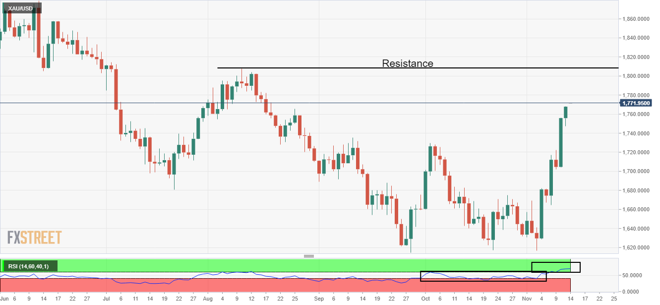 - 市场乐观情绪高涨,金价寻求突破1800美元大关。