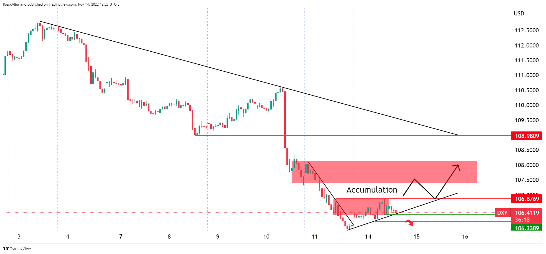 澳元兑美元趋势将取决于美元,目前美元小时图出现累积动能的迹象。