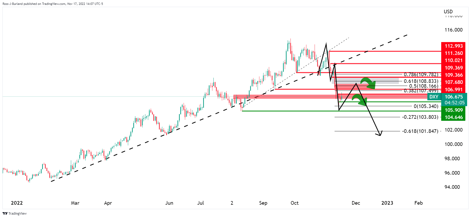 多头正处在趋势背面,但多头需要突破107.00才能瞄准109.00,否则将面临进一步供应前景,若美元跌破105.90,将测试8月低点104.64。