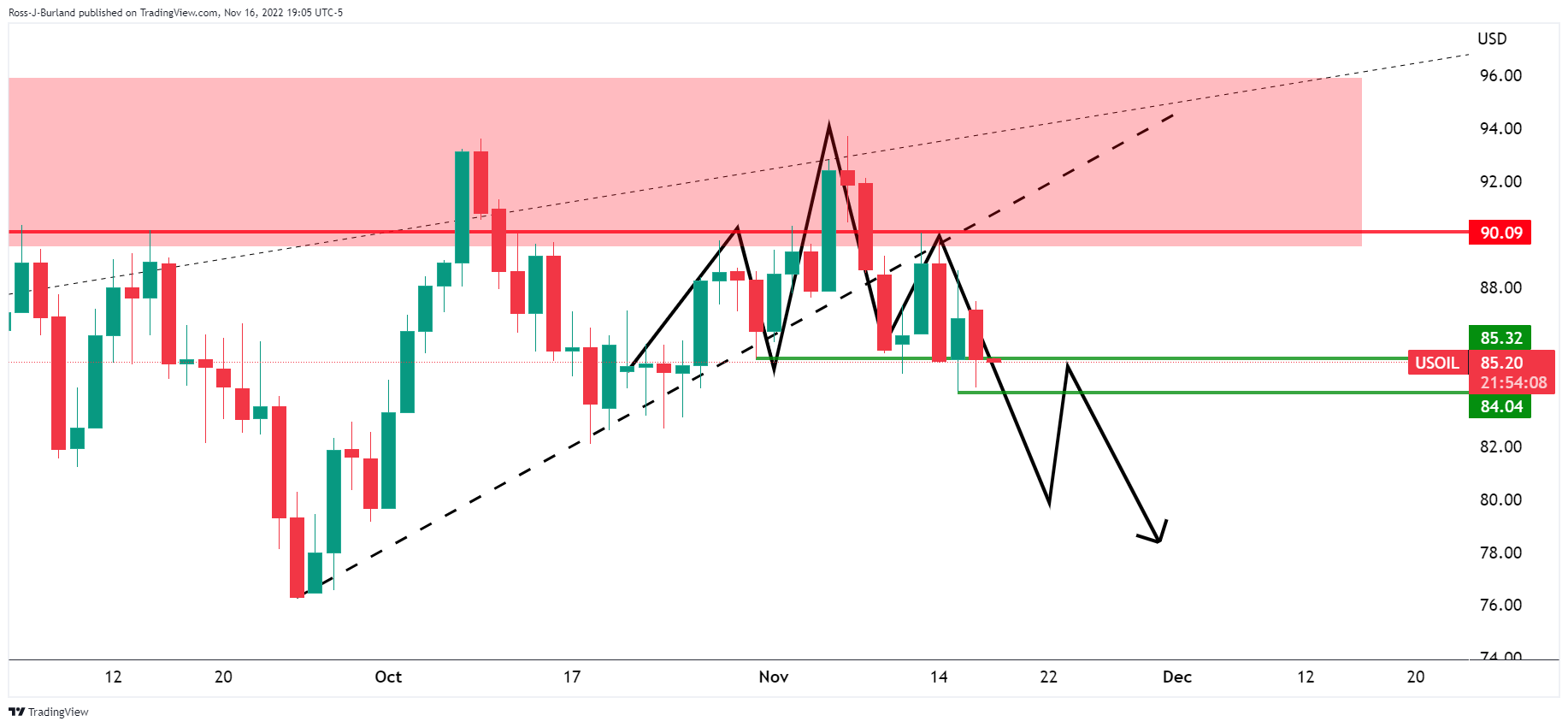 WTI油价若跌破84美元,就会全然反转这一倾向:
