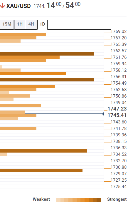 黄金兑美元价格分析:下行目标指向1,736美元,然后是1,730美元-汇合指标探测器
