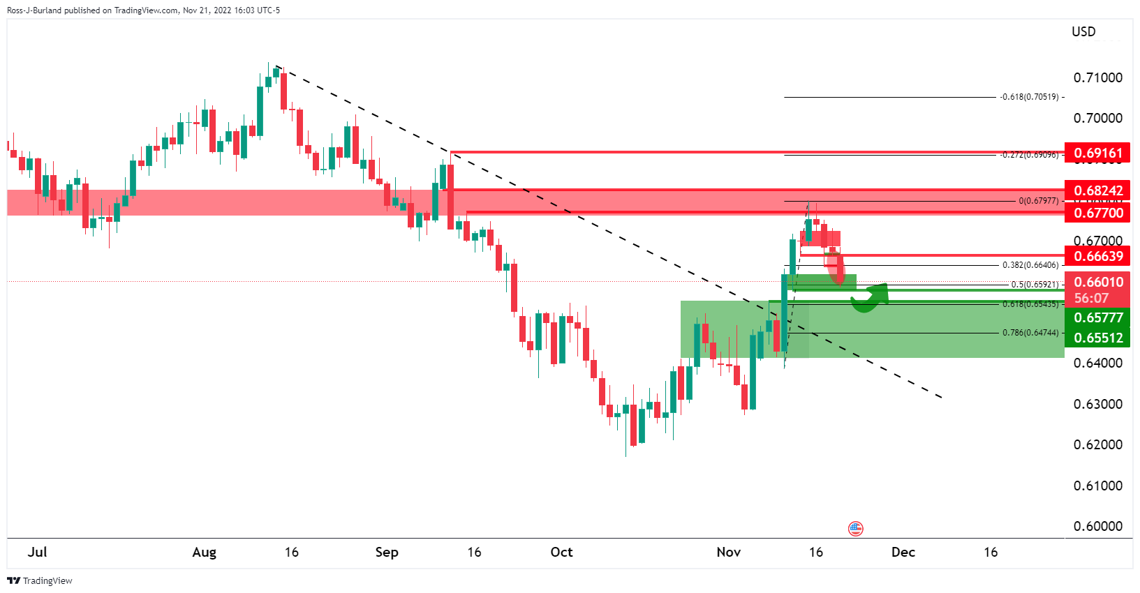澳元/美元价格分析:空头正蛰伏于日缐支撑附近,指向0.6570/50水平