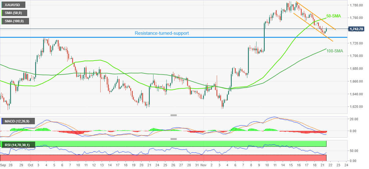 另一方面,自10月初以来的先前阻力缐以及上述看跌通道的下轨缐位于1730美元附近,若跌破该关键支撑位,黄金空头将重拾控制权。