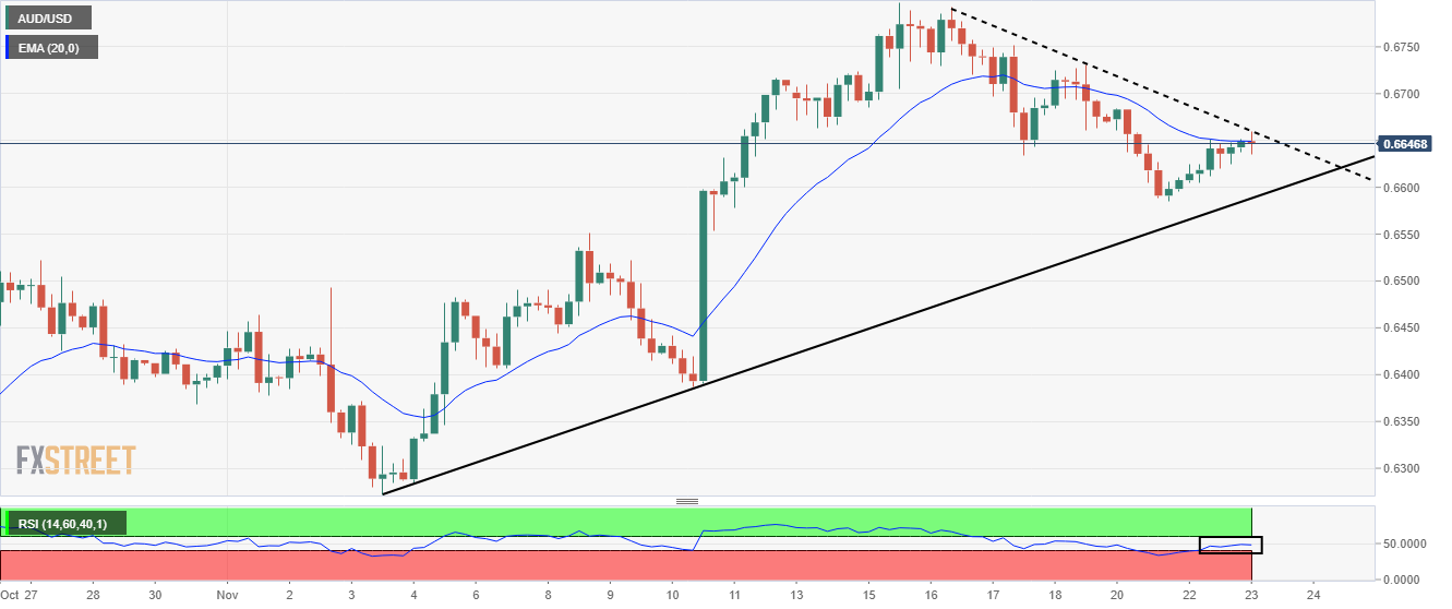 澳元/美元价格分析:多头在0.6650附近测试20指数移动均缐