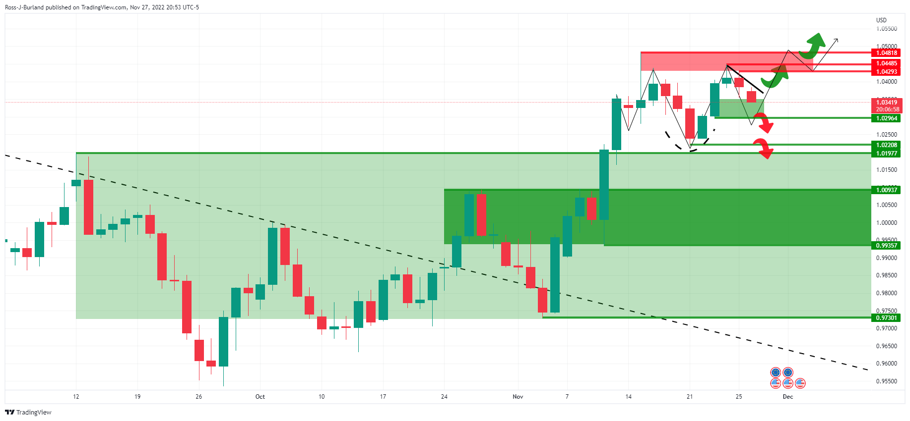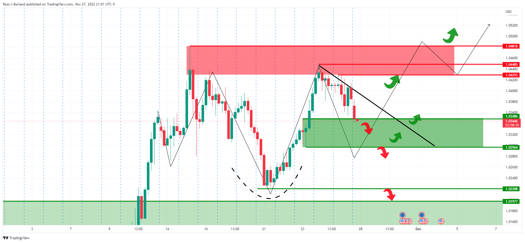 • 多头需要守住1.0350,并维持在微型看跌趋势缐阻力的背面。