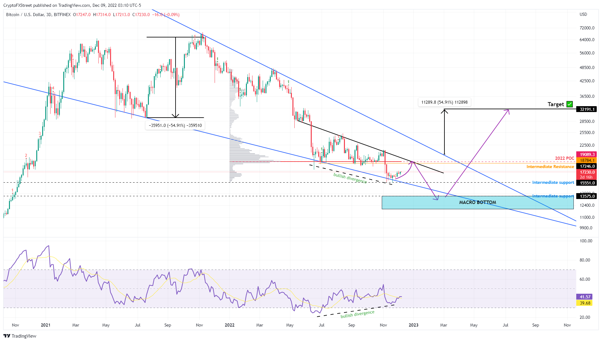比特币价格在11月9日的三天图表上出现了一个看涨背离,此后一直在该时间框架内看涨。在FXStreet指出这一技术信号后,比特币反弹了19%,并在18,400美元录得一个阶段性顶部。