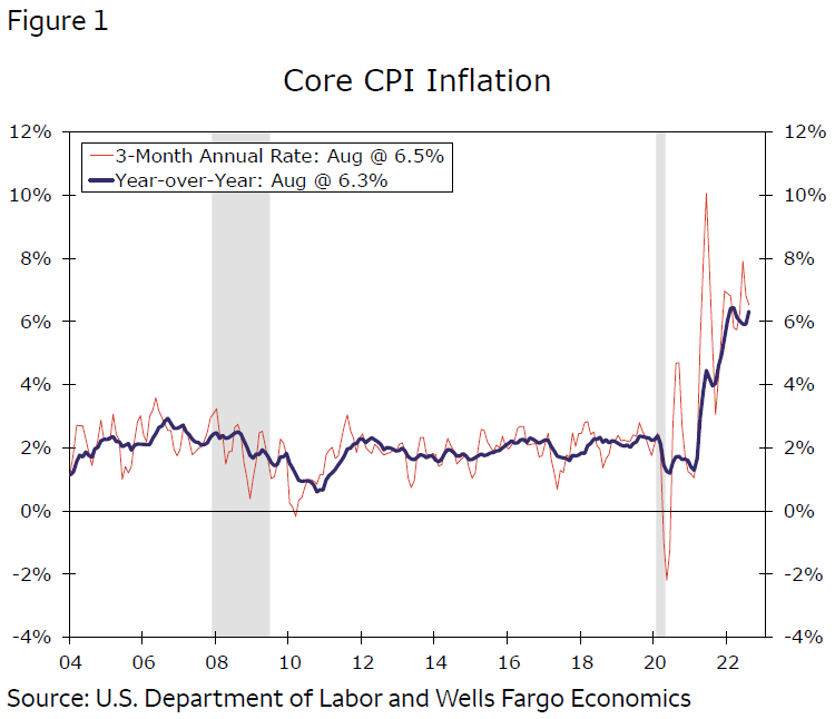 我们对预测的更新至少在一定程度上反映了美国经济最近几周明显的弹性。 8月份非农就业人数增加了31.5万,远高于2010-2019年长期扩张期间平均每月约19万的增幅。劳动力市场的紧张大幅推高了工资水平,过去一年平均时薪上涨了5%以上。可观的工资增长不仅有助于维持消费支出(实际消费支出可能在8月份再次上升),而且与2%的通胀率不一致,而2%是美联储的目标利率。在这方面,5月至8月,核心CPI年化增长率為6.5%(图1)。
