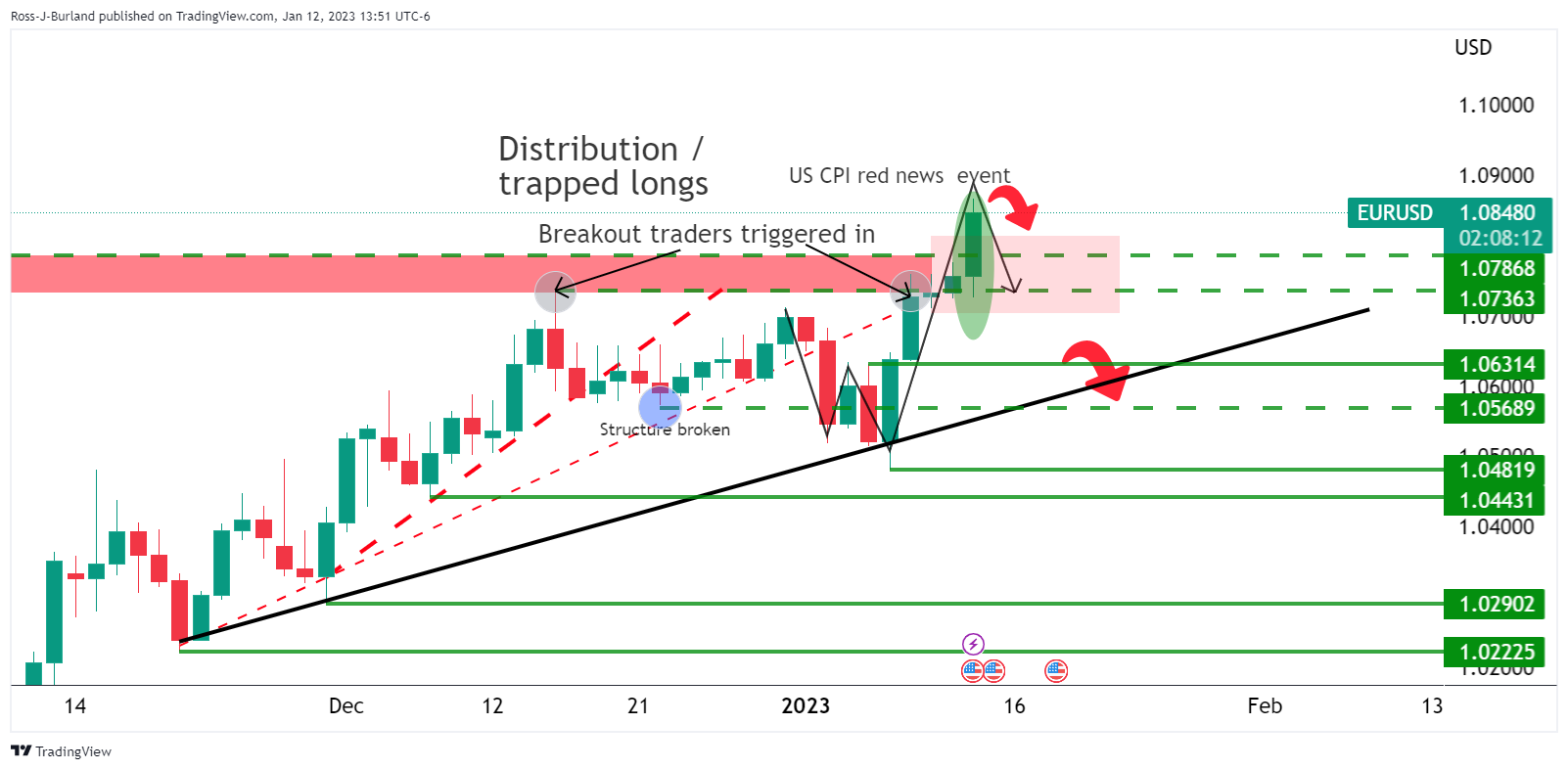 按照前期分析,欧元/美元价格分析:多头可能会进入陷阱,有人解释说,押注突破的交易者在消费者价格指数事件之前得到触发,介入市场。然而,美国通胀引发欧元/美元反弹突破1.0800,并可能在1.0850区间内触发止损位。继美国通胀公布后的技术分析,这為后市欧元/美元反转打?空间,欧元/美元刷新看涨周期高点,有望展?為期5天的反弹。